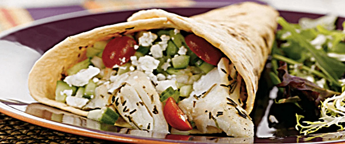 To serve, divide halibut among tortillas. Sprinkle on goat cheese and top with cucumber salsa.